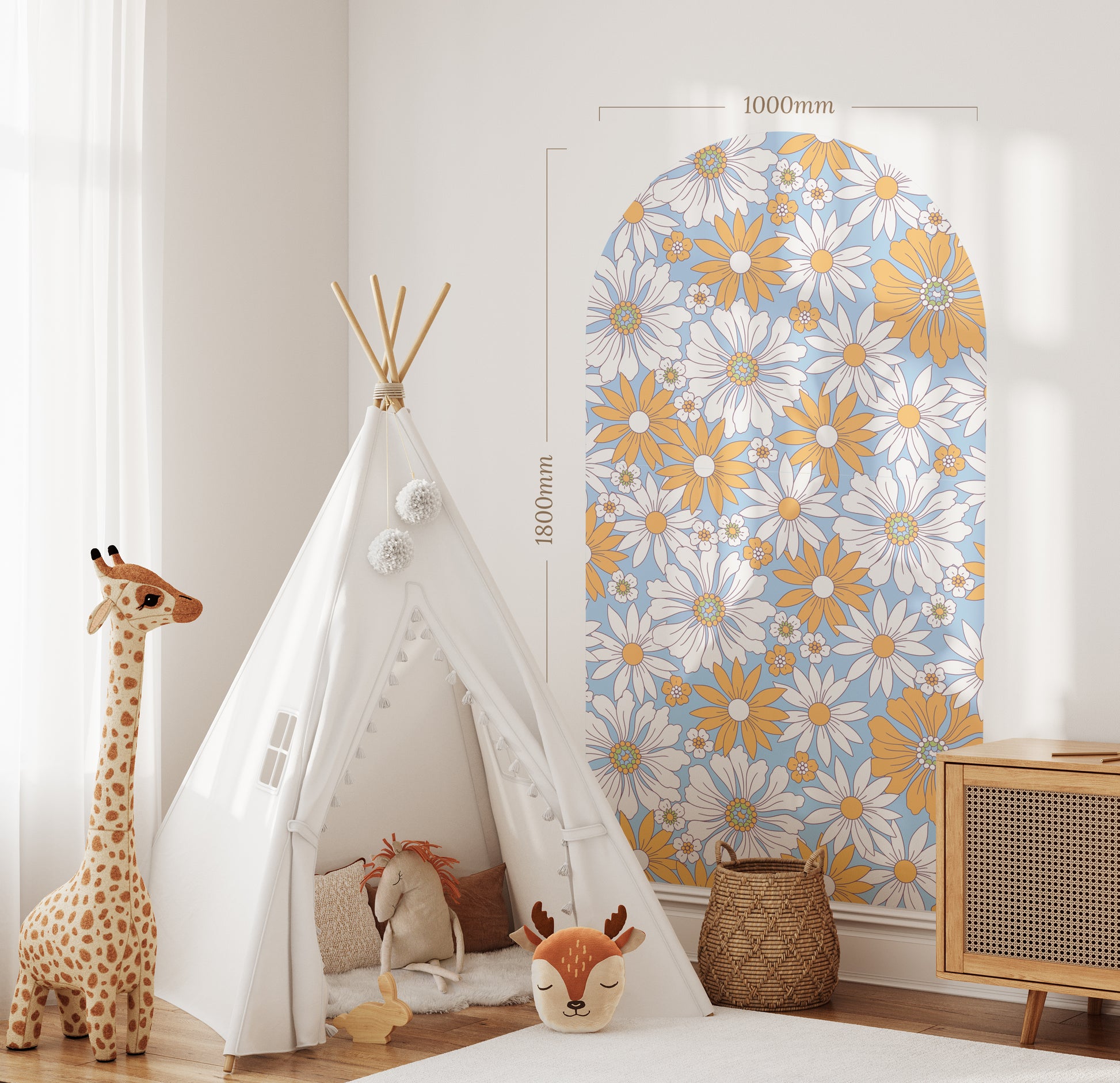 Featuring flower, blue, yellow, white and soft, child-friendly detailing, this piece brings warmth, colour and character to any space. Printed on high-quality removable vinyl, it’s easy to apply, reposition and remove without damage — ideal for nurseries, bedrooms and rental homes alike.