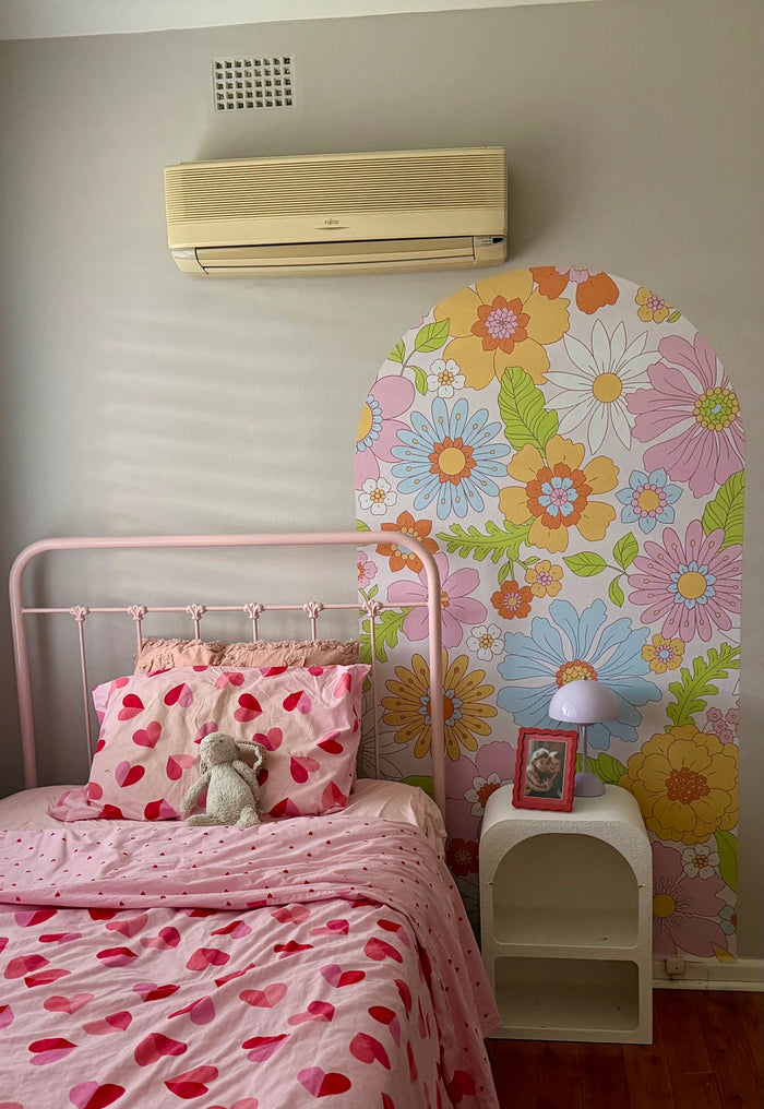 "My daughter is obsessed and honestly so am I I ordered the retro floral arch decal for my daughter’s bedroom and it has completely transformed the space."