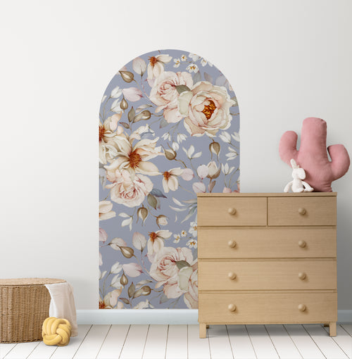 Blue Pink Floral Arch blends soft pink and blue florals for a sweet, balanced design. This removable wall decal adds a playful yet calming aesthetic to nurseries and kids spaces.