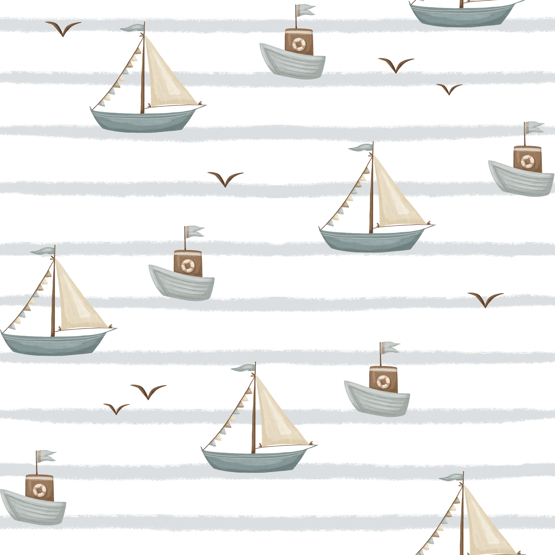 • Gentle sailboat wall decal motif in soothing ocean blues