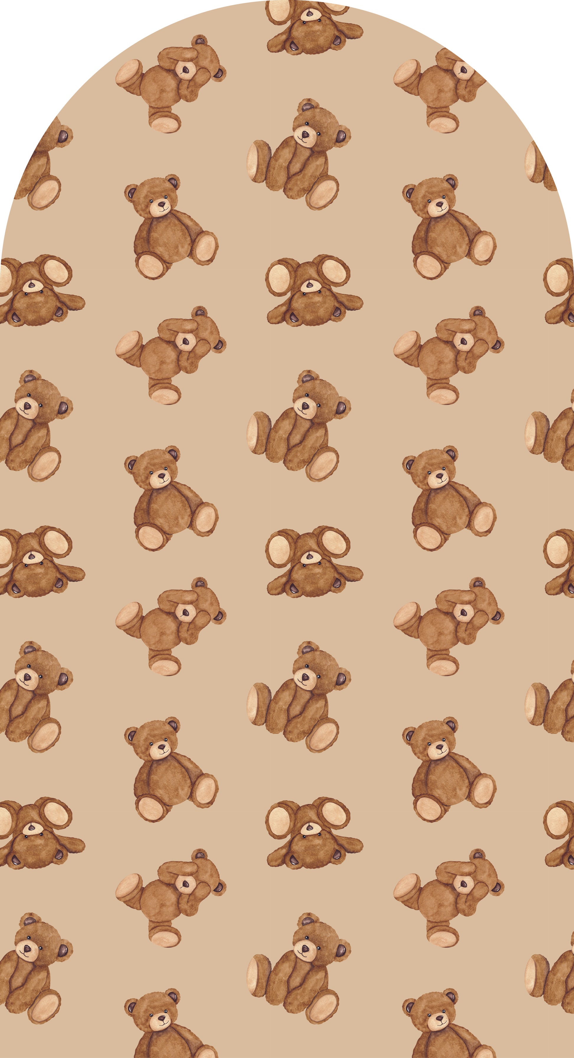 Squares of snug. This gentle arch pairs a cuddly teddy with a soft tiled/checker pattern to create an instant feature wall for nurseries and kids’ rooms. The arch silhouette frames cots, change tables, and reading nooks beautifully—no paint, no mess—while the calm neutral palette layers effortlessly with rattan, timber accents, and pastel linens. Designed for easy styling and everyday comfort, it turns ordinary corners into cosy cuddle spots with a playful geometric twist.